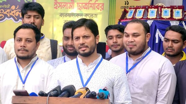সংবাদ সম্মেলনে জবি শিবিরের সেক্রেটারি আব্দুল আলীম আরিফ, বায়তুলমাল সম্পাদক মোস্তাফিজুর রহমানসহ অন্যান্য নেতারা উপস্থিত ছিলেন।